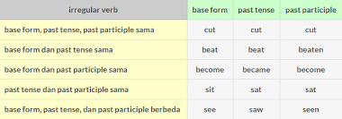 Irregular verbs merupakan kata kerja yang perubahannya tidak teratur pada bentuk past (verb 2) dan bentuk past participle (verb 3).